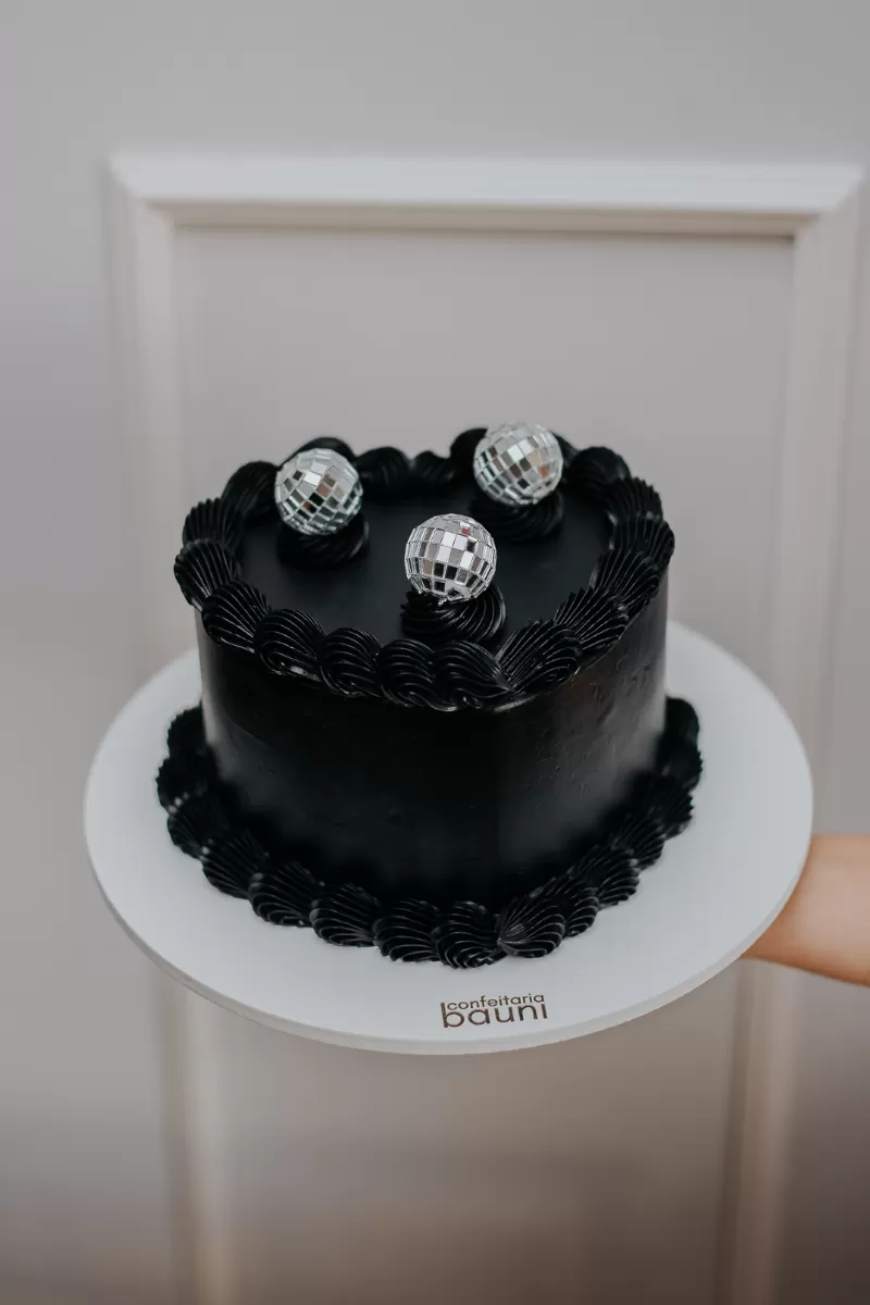 Bolo finalizado em buttercream de merengue suíço, com três camadas de massa e duas de recheio e decoração com globos espelhados. Peso aproximado de cada tamanho: P -> 1,6kg M -> 2kg G -> 2,6kg