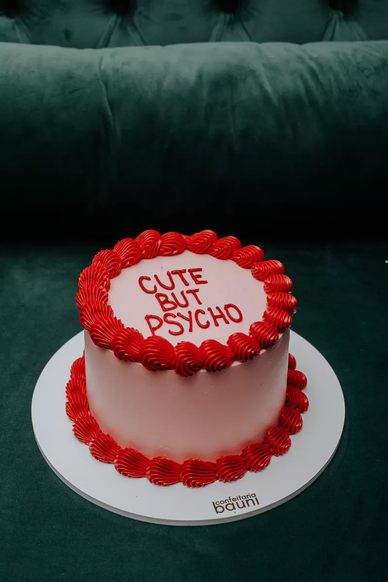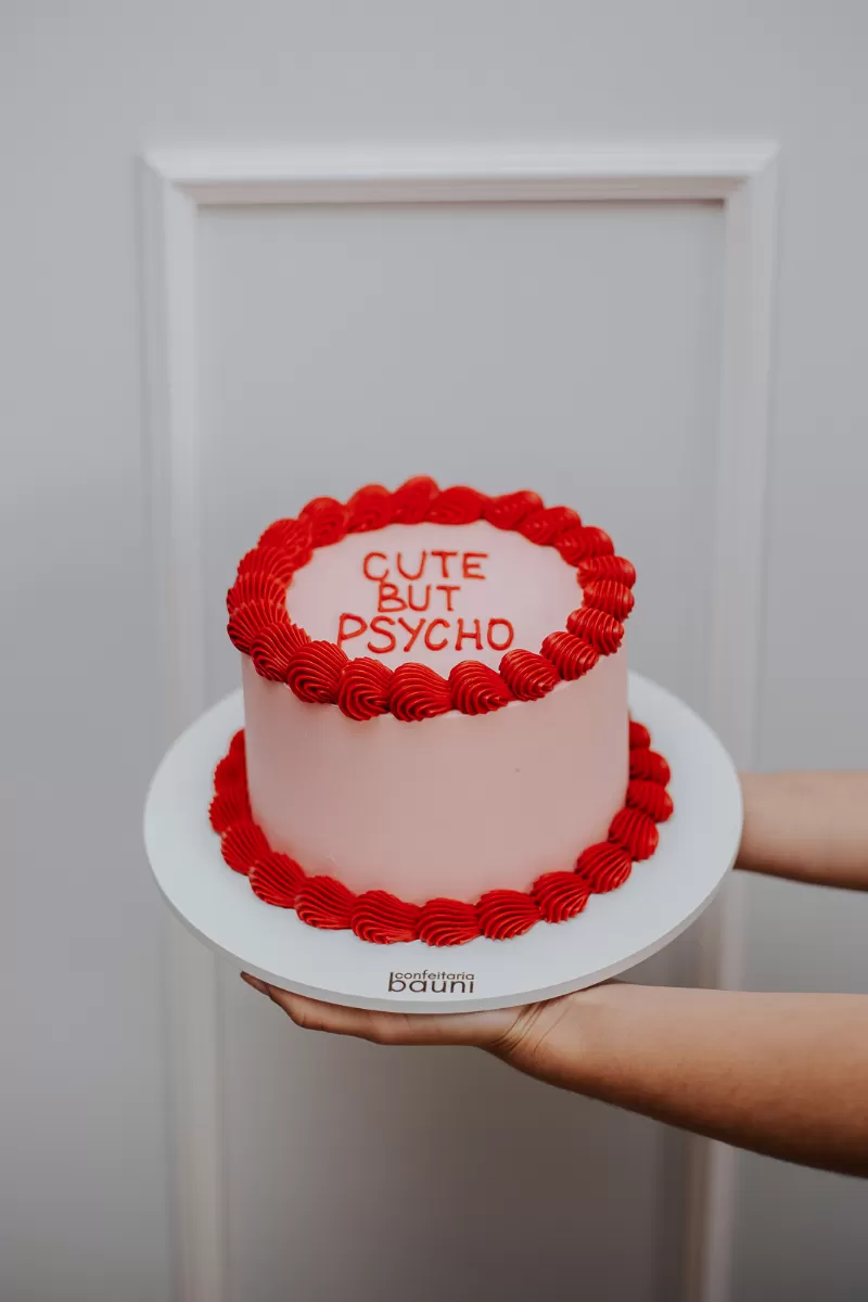 Bolo com três camas de massa e duas de recheio, decorado com buttercream de merengue suíço. Sendo a borda no tom mais escuro que a cobertura do bolo. Obs: Informar a frase que irá no bolo no campo "observações". Peso aproximado de cada tamanho: PP -> 0,9kg P -> 1,6kg M -> 2kg G -> 2,9kg