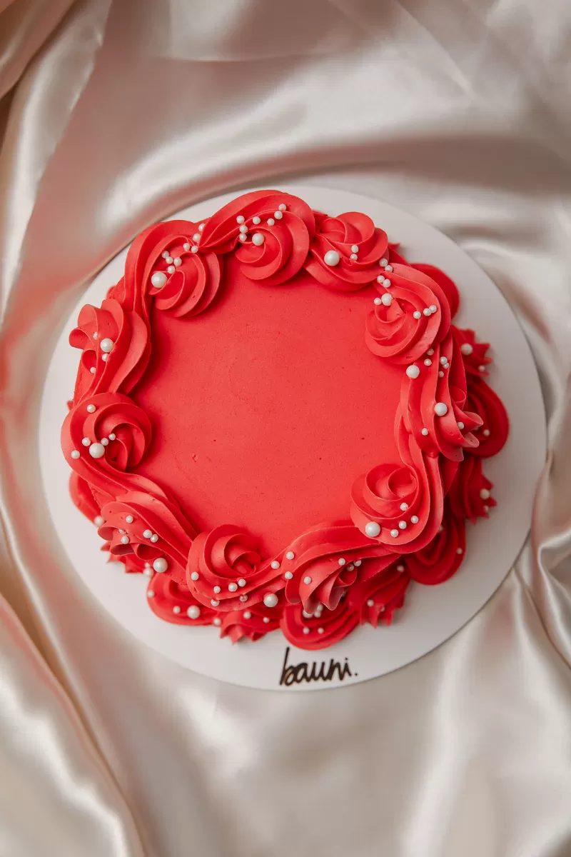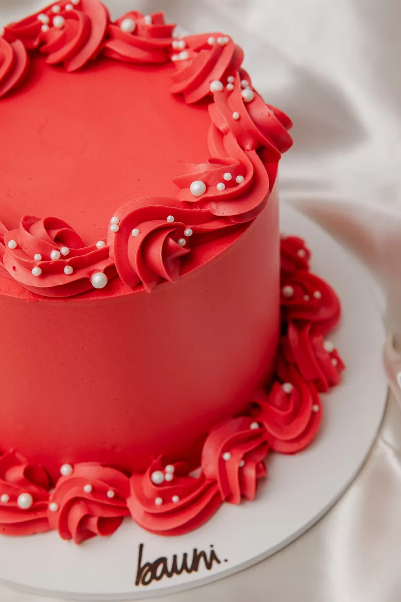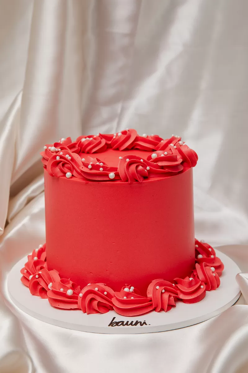 Bolo finalizado em buttercream de merengue suíço e decorado com pérolas de açúcar. Peso aproximado de cada tamanho: PP -> 0,9kg P -> 1,6kg M -> 2kg G -> 2,9kg