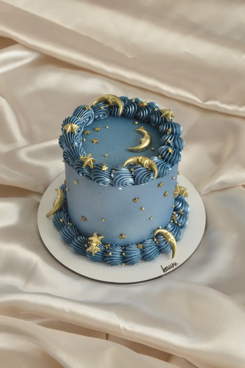 Bolo finalizado em buttercream de merengue suíço, com três camadas de massa e duas de recheio. Decorado com apliques em pasta americana. Caso queira adicionar frase, deixar no campo "observação". Peso aproximado de cada tamanho: PP -> 0,9kg P -> 1,6kg M -> 2kg G -> 2,9kg