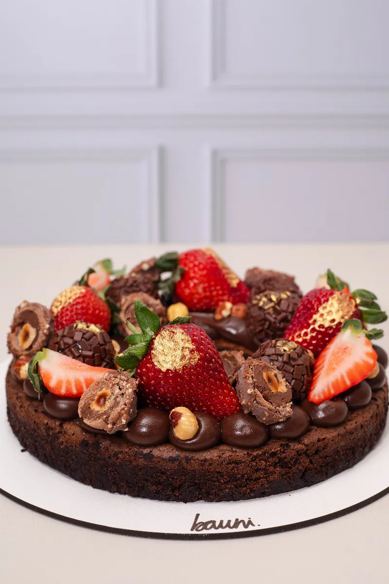 - Brigadeiro tradicional com pedaços de Ferrero Rocher, morangos frescos, avelãs e brigadeiros enrolados.