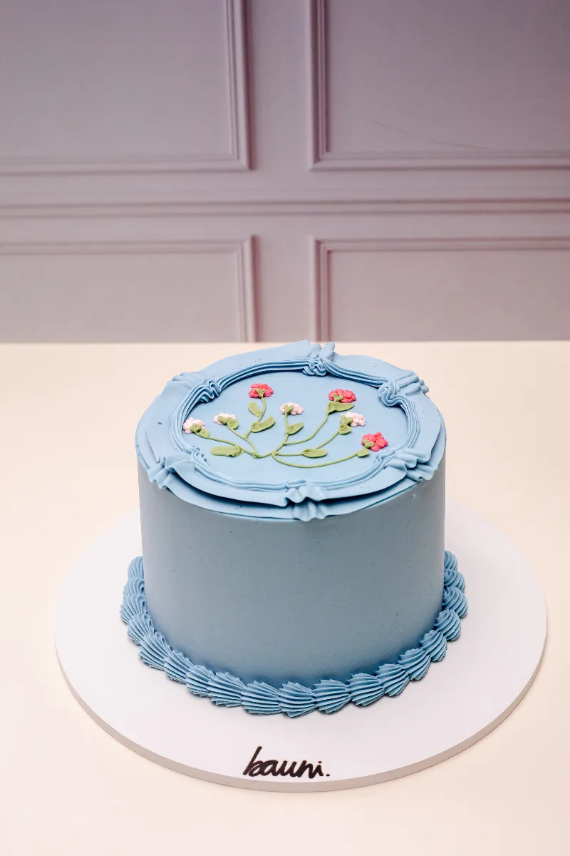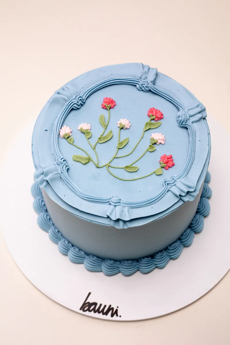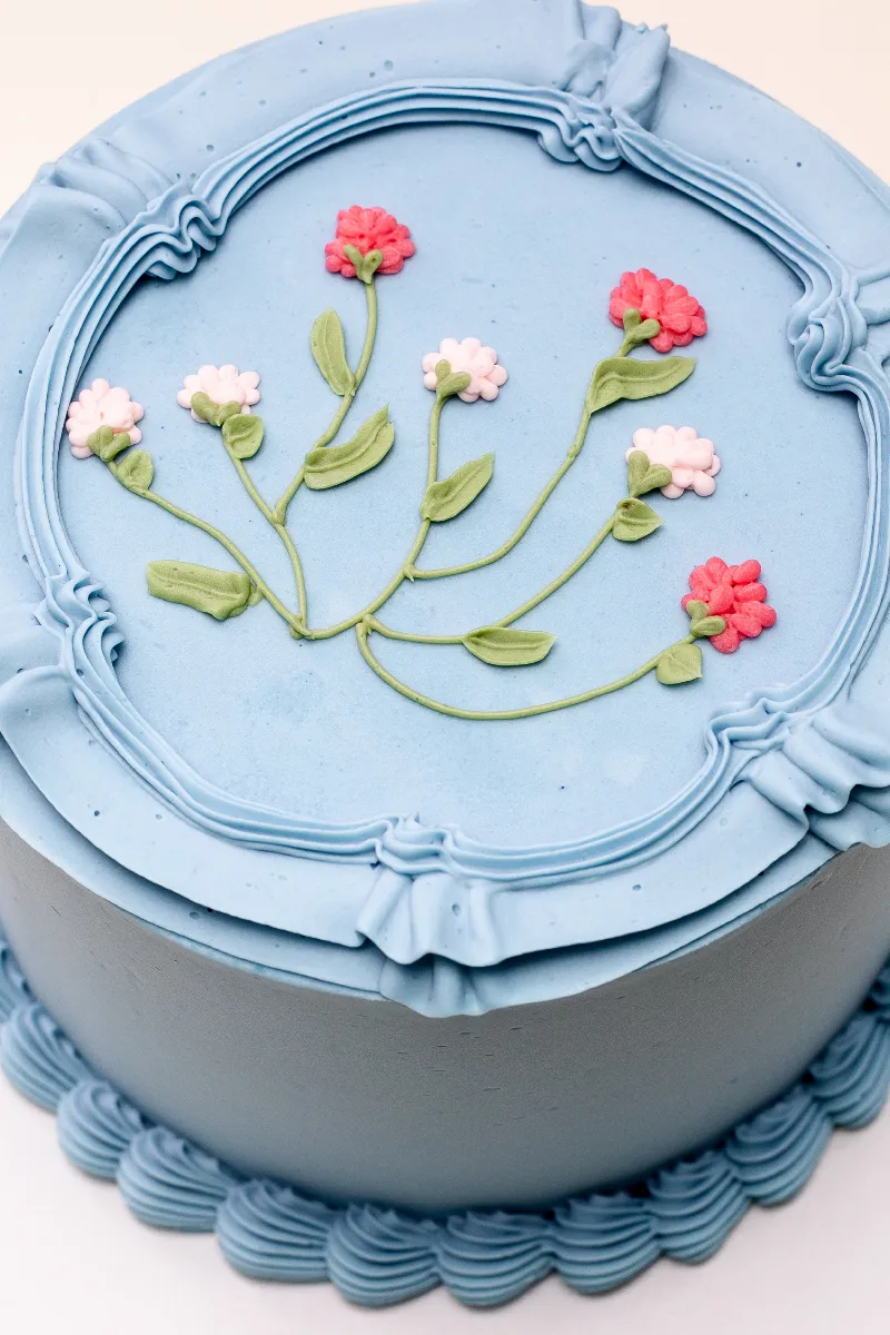 Bolo finalizado em buttercream de merengue suíço, com três camadas de massa e duas de recheio e decoração. Peso aproximado de cada tamanho: PP -> 0,9kg P -> 1,6kg M -> 2kg G -> 2,9kg
