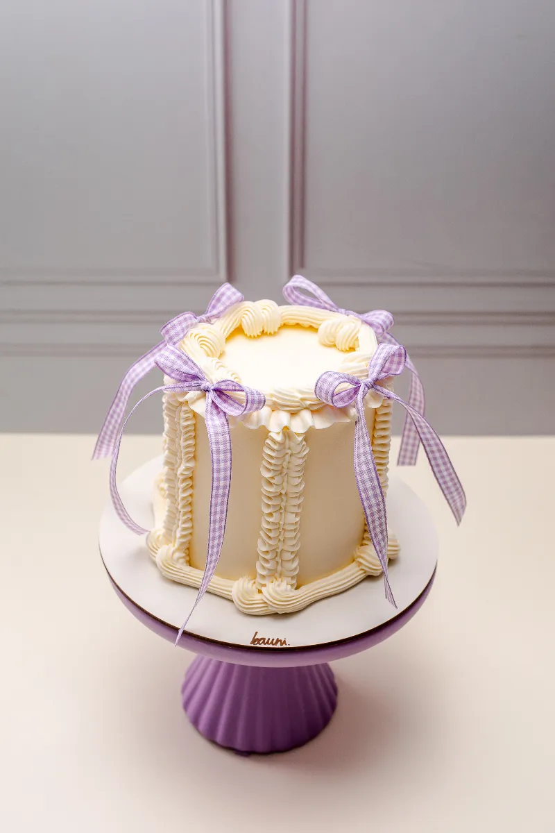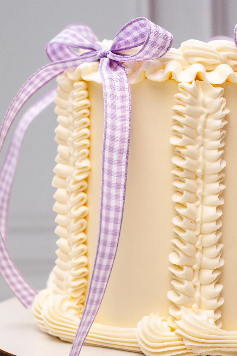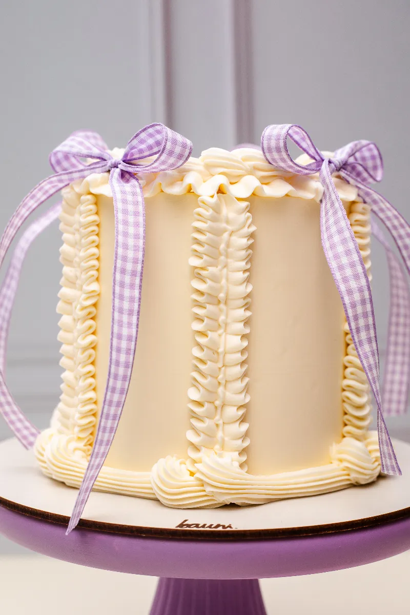 Bolo finalizado em buttercream de merengue suíço, com três camadas de massa e duas de recheio e decoração. Peso aproximado de cada tamanho: PP -> 0,9kg P -> 1,6kg M -> 2kg G -> 2,9kg