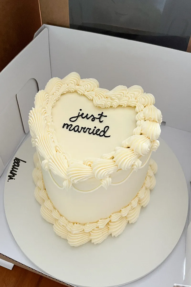 Bolo finalizado em buttercream de merengue suíço, com três camadas de massa e duas de recheio e decoração. Peso aproximado de cada tamanho: PP -> 0,9kg P -> 1,6kg M -> 2kg G -> 2,9kg