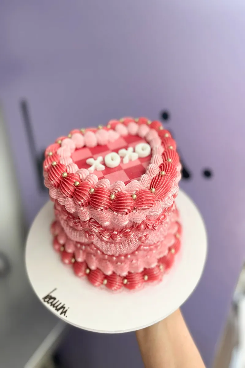 Bolo finalizado em buttercream de merengue suíço, com três camadas de massa e duas de recheio e decoração. Peso aproximado de cada tamanho: PP -> 0,9kg P -> 1,6kg M -> 2kg G -> 2,9kg