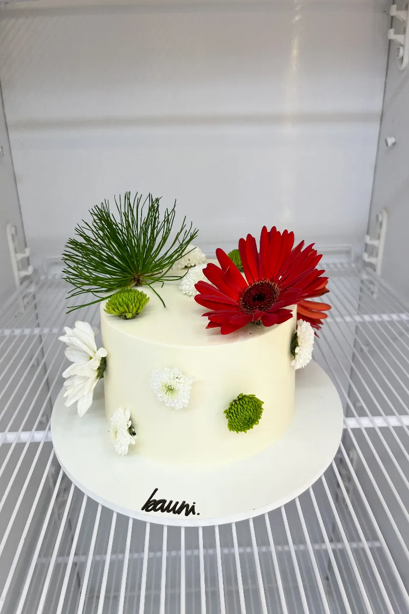 Bolo finalizado em buttercream de merengue suíço, com três camadas de massa e duas de recheio e decoração. Peso aproximado de cada tamanho: PP -> 0,9kg P -> 1,6kg M -> 2kg G -> 2,9kg