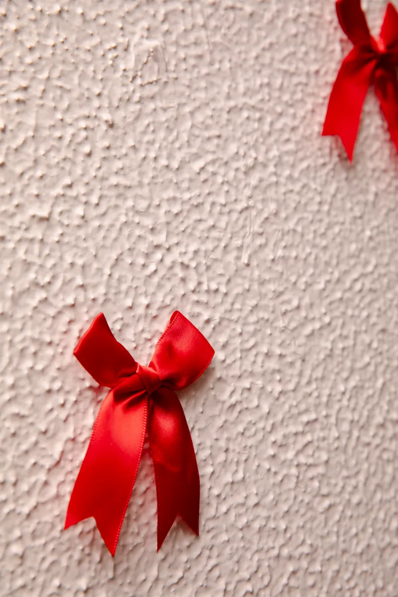 Laços de cetim na cor vermelha, medindo 8,5cm x 8,5cm, ideais para compor a parede do bolo ou até mesmo enfeitar a mesa da festa.