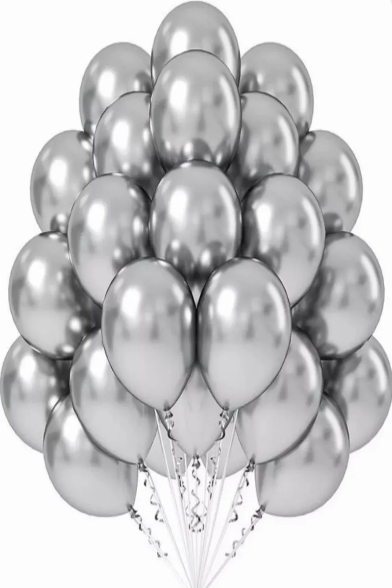 Pacote com 25 unidades da nossa bexiga icônica, metalizada, na cor prata.