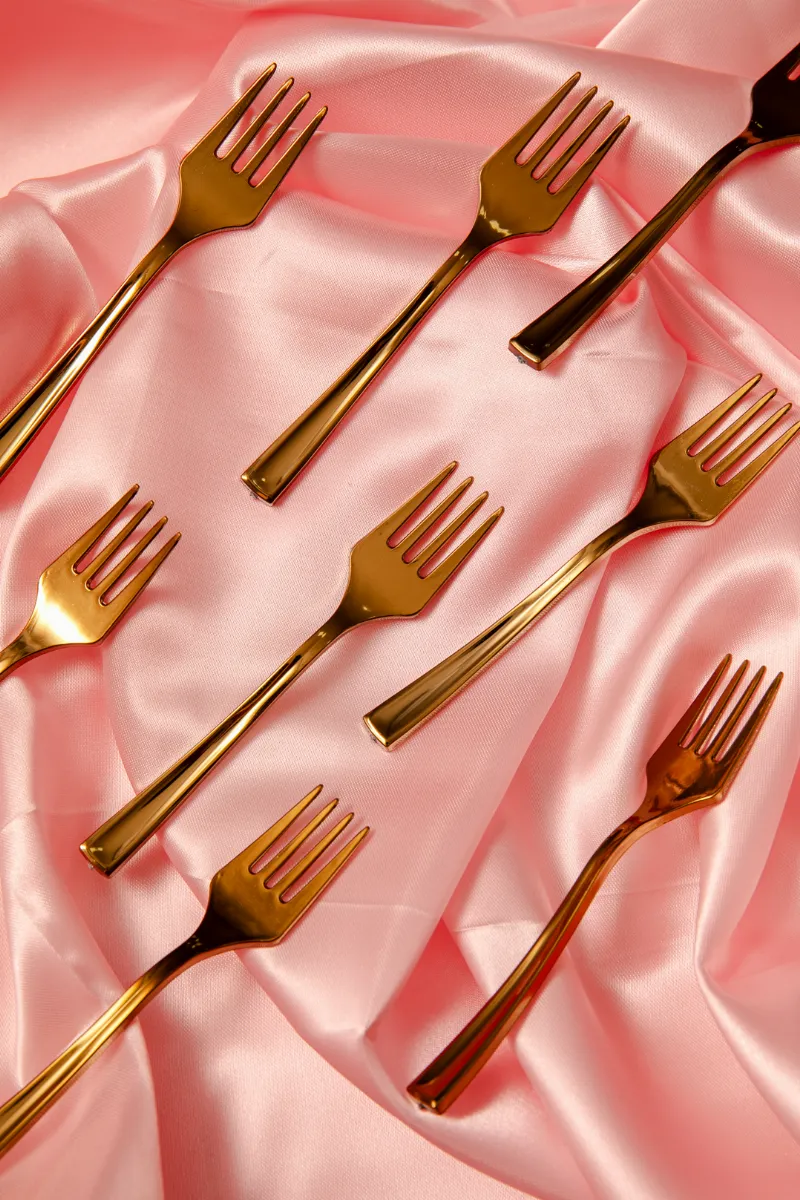 10 unidades de garfos de sobremesa dourados pra comer o bolo com ainda mais estilo!