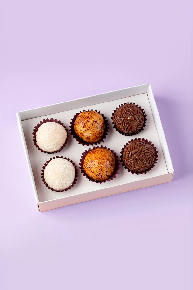 Caixa com 6 brigadeiros. Obs: Escolher até 1 sabor.